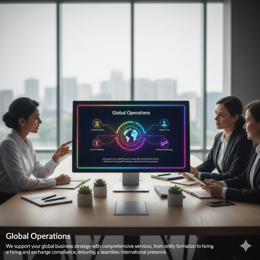 We support your global business strategy with comprehensive services, from entity formation to hiring and foreign exchange compliance, ensuring a seamless international presence.